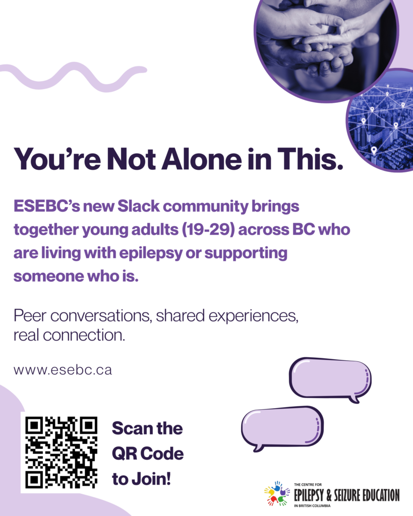 We are excited to share that the ESEBC Online Youth Epilepsy Community Hub is now officially open. This new space has been created for young adults across British Columbia who are living with or affected by epilepsy. The hub is a supportive and inclusive online community designed specifically for youth ages 19 to 29 who are looking for connection, understanding, and a place to be themselves.