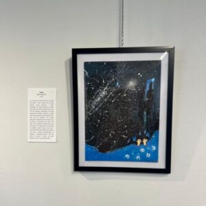 Hi, my name is Avery and I am 11 years old. When I was 4 years old my dad started having seizures. I often witnessed my dad’s seizures at night time after bed. This was very scary for me! My painting represents my lived experience through emotions. A dark night sky represents late hours when my dad had his seizures. The water represents what felt like drowning in my emotions of adrenaline and fear. The static sky represents feeling fuzzy and panicked. I am happy that my dad has his epilepsy under control now and I have been able to process my emotions and have a better understanding of epilepsy. I understand that it can be scary to watch a loved one with epilepsy, but I am strong and brave!