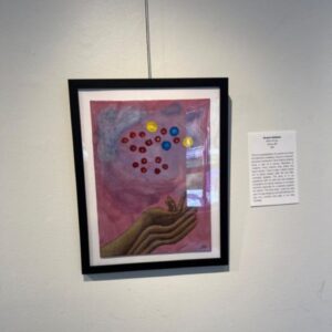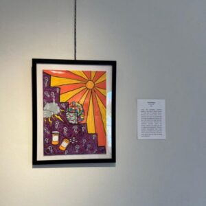 This piece connects with the theme Beyond Diagnosis because when I was first diagnosed, I wasn’t able to go to the beach and go swimming. Now that I have figured out the right medications and my seizures are under control, I am able to. So the beach scene represents growth in me.