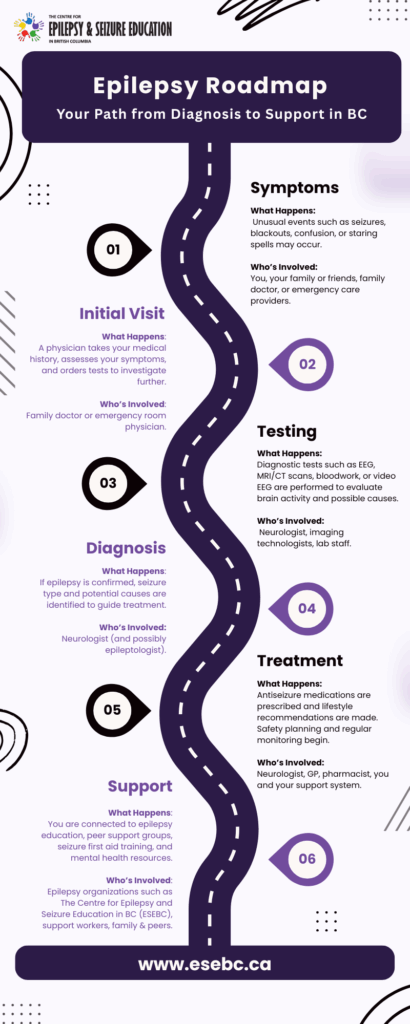 To help individuals and families feel more supported and informed, we have created the Epilepsy Roadmap, a clear and easy-to-follow guide that outlines each stage of the journey. From recognizing symptoms and undergoing testing to receiving a diagnosis, beginning treatment, and finding community support, this resource explains what to expect and who is involved at every step.